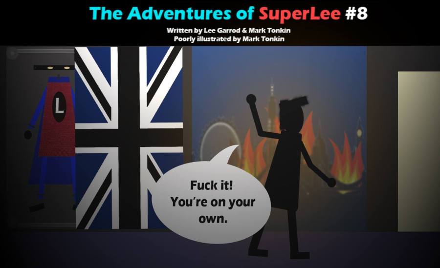 Okay it’s not the best method but it transformed a shit joke into a mediocre one. I then used the “reasons I’d make a terrible superhero” to dump out more bad puns, then shit changed. I started to use jokes about the format of superhero movies, about morality, and about vengeance. People really started to dig it, so I considered having it in another medium. We briefly had a webcomic (visible here) but I needed more. I eventually decided as a sketch show, albeit one where every episode has a running theme. It was when I was thinking of this that I came up with one of the most distinguished parts of the series: Lee would be a male character, but Superlee would be female. I’ll freely admit that this is because the one performer I trust with this character is a woman, plus I found the idea funny. It’s easy to justify too, just say “well, of course, I look different, that’s a point of a secret identity”. That part has been kept, because I found it funny, and it’s unique. Plus it really sets up the weird pseudo-reality tone that I’m going for. There was just one issue; sketch shows are really fast-paced, and the way I write REALLY isn’t. So I put it on the backburner until last month when I needed to write a sitcom for reasons I can’t be bothered to go into here. It went through a few structural changes as I was writing it. I had a character who was originally supposed to be in one scene but then I decided to make him a season regular. I added a narrator, not so much for the benefit of this episode but it will really come into it’s own later in the season. The format is pretty much settled, and all but one major character. I’ve set up the first season with this episode and I’m pretty proud of what I’ve managed, especially since with the exception of one scene it’s filmable on a cheap budget. I know this isn’t the final draft, but I’ve definitely got the major parts down. I feel different drafts from here on in will be tweaks rather than complete rewrites. Hope you guys enjoy it too, here you go: