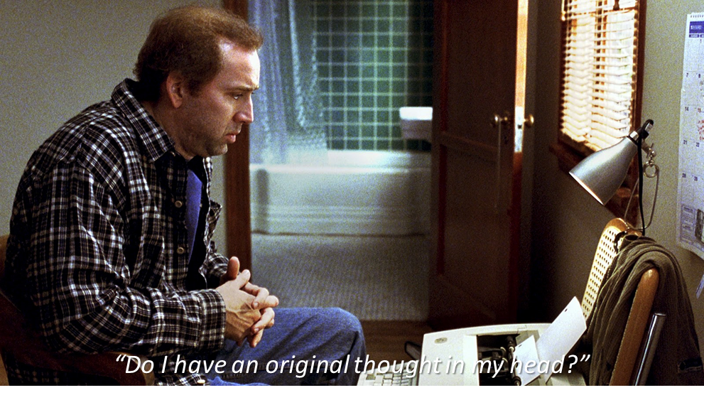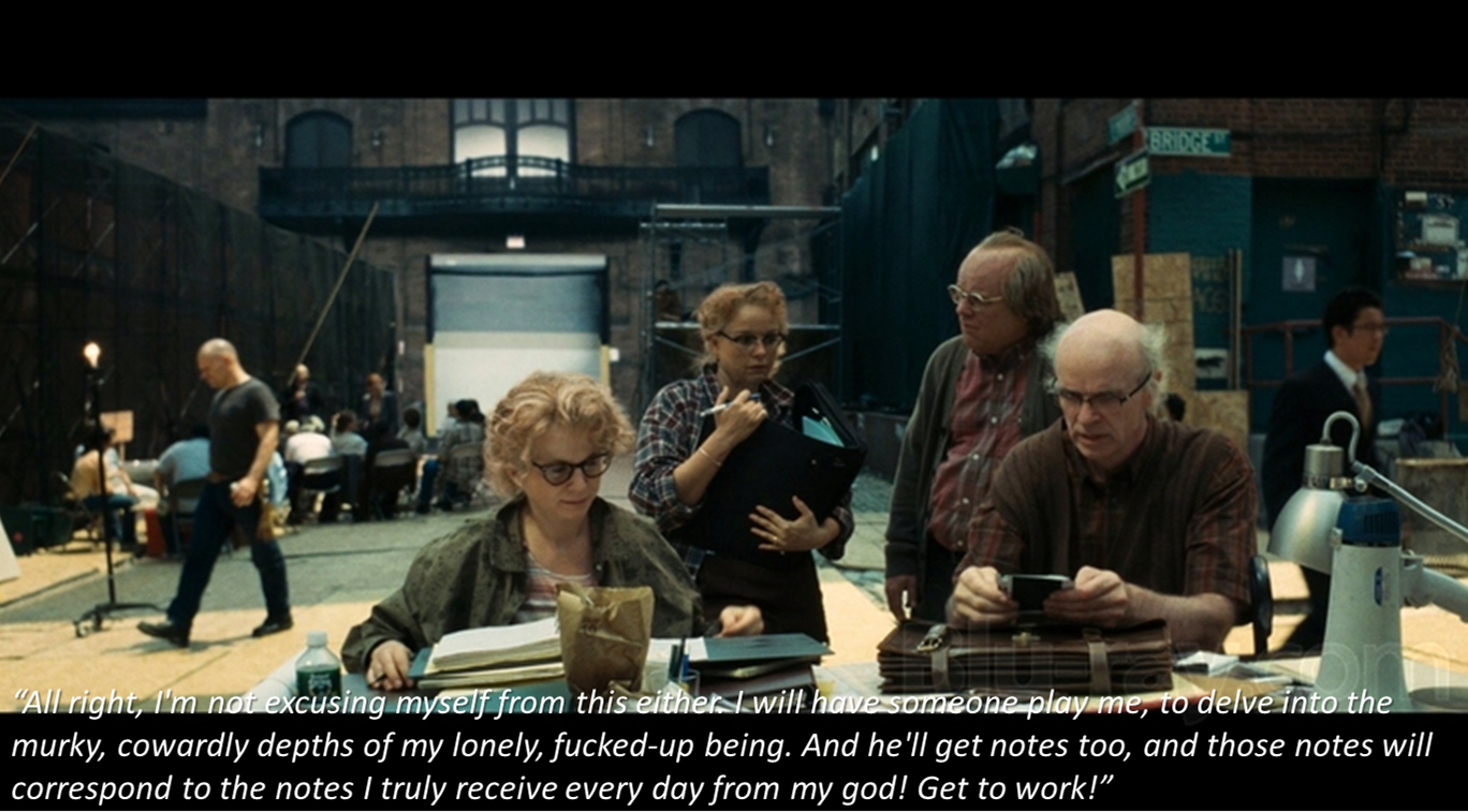 The films I stole most of my ideas from where mainly Charlie Kaufman’s (a personal favorite writer), Synecdoche, New York and Adaptation. The former, a film about a play writer who’s lines of reality and fiction start to blur as he puts on a play within a play within- you get the idea, and the other about a fictional version of Kaufman writing the film he’s in. Synecdoche ended up having a more lasting impact overall, because in early drafts Projector was about me, I mean of course it’s about me, I mean literally, it was about fictional versions of me and people I know, in a uber-meta self-indulgent kinda way. Luckily the rest of my group had the sense to talk me down from that ledge.